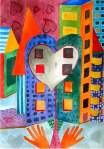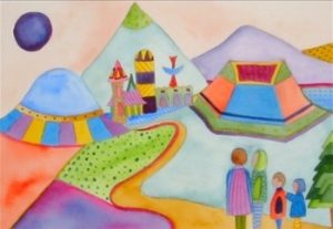 These watercolor paintings are a glimpse of a personal journey of the imagination: exploration and discovery. Through the whimsical use of color, shape, texture, and pattern, each watercolor painting captures a dream world of the child within. The artist hopes to touch the hearts and souls of those who are exploring themselves.