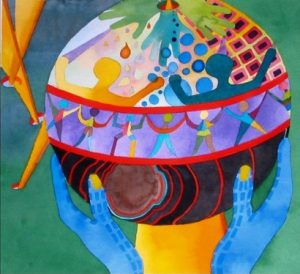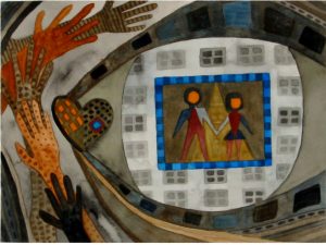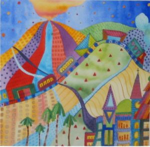 These watercolor paintings are a glimpse of a personal journey of the imagination: exploration and discovery. Through the whimsical use of color, shape, texture, and pattern, each watercolor painting captures a dream world of the child within. The artist hopes to touch the hearts and souls of those who are exploring themselves.